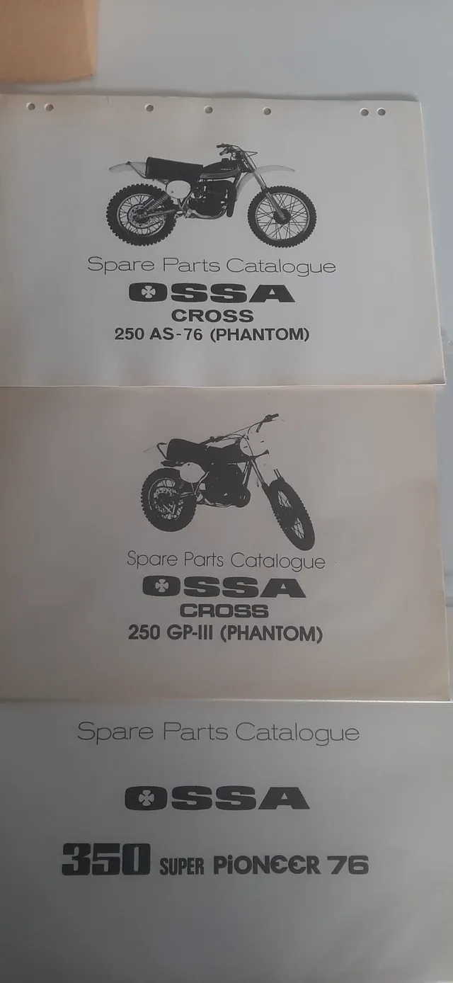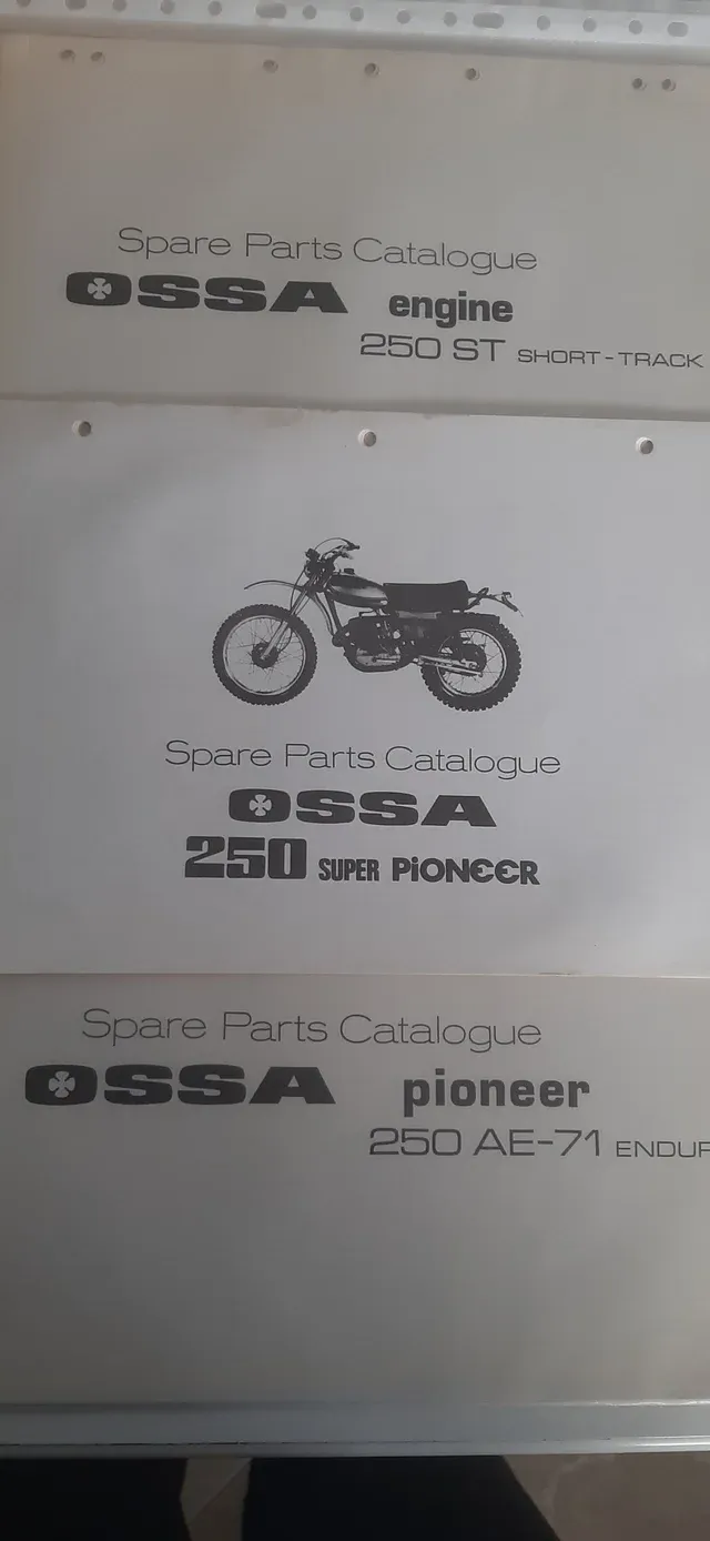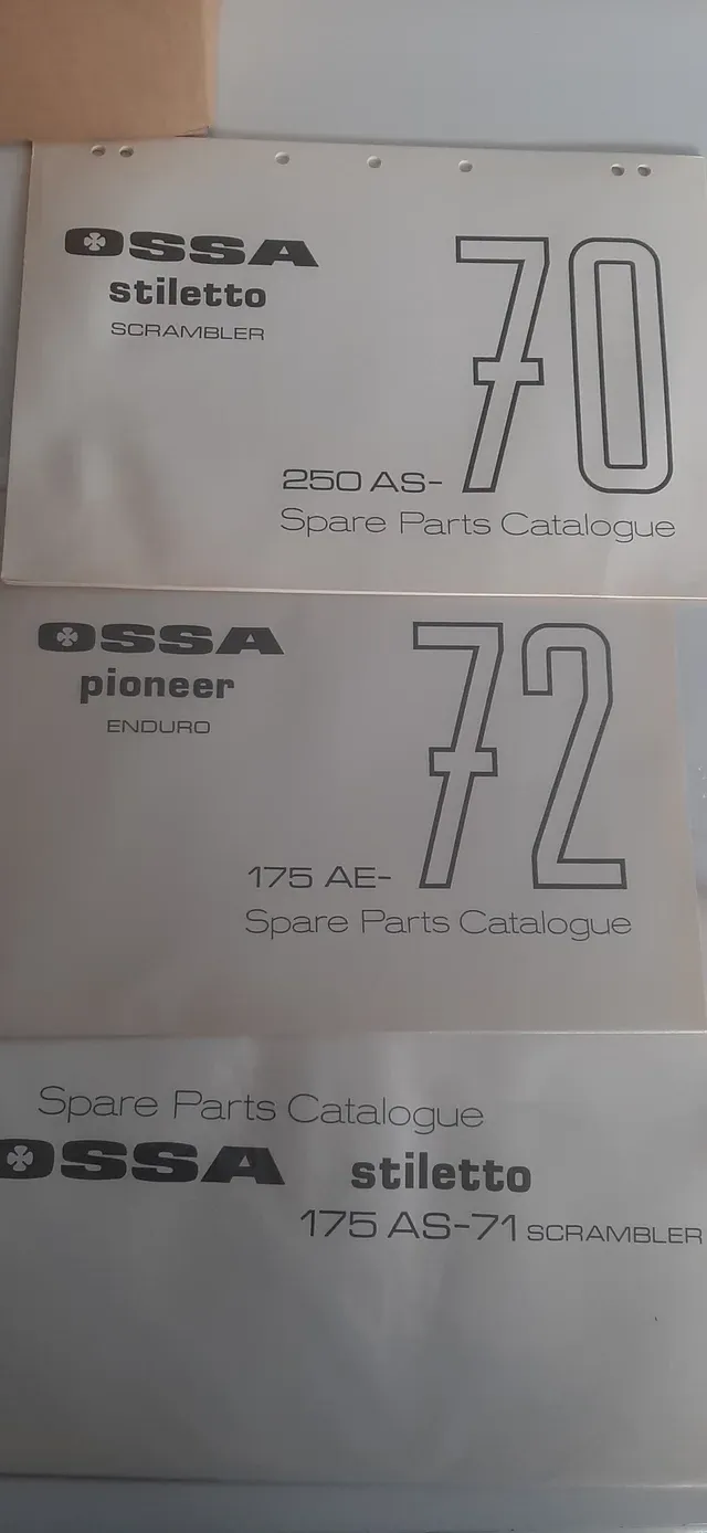PrincipalTiendaManuales y despiecesLote de 12+1 catalogos de piezas de modelos ossa desde 175cc hasta 350cc. Manuales unicos.